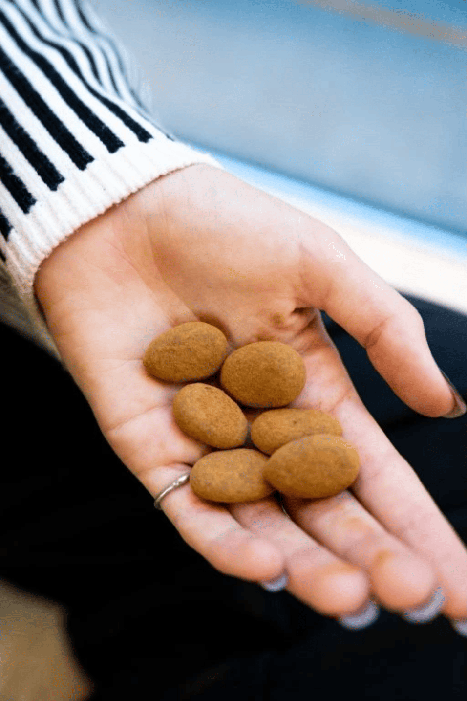 Ingredients: milk chocolate 65% (organic cocoa beans, organic dried cane juice, cocoa butter, organic dried whole milk), almonds 34%, cinnamon 1%